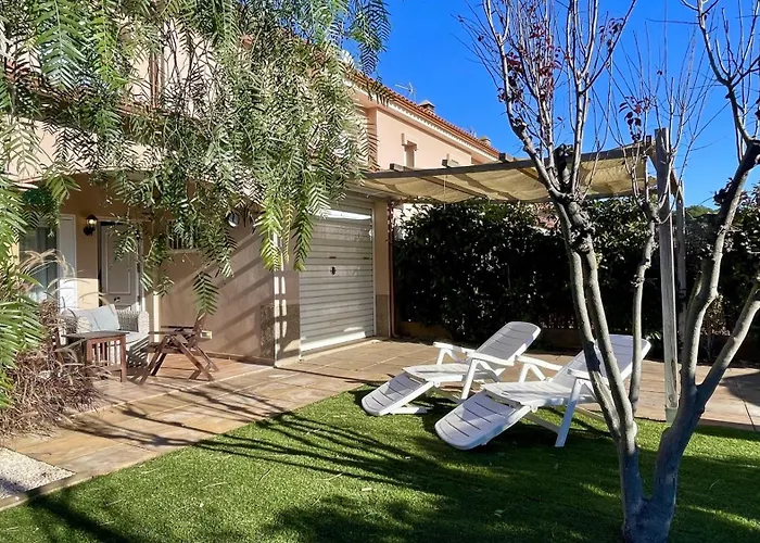 Rambla Mallols 9 Casa L' Escala ligt op 3 km afstand van het Platja Cala del Pedrigolet en nodigt gasten uit om te ontspannen op een terras.